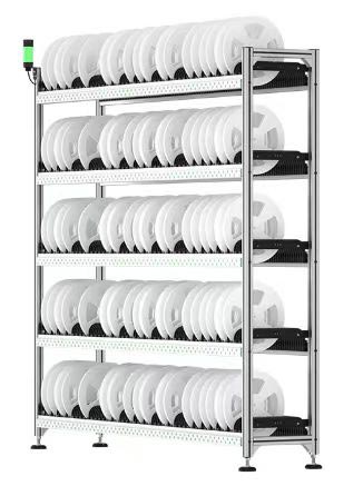 B型智能料架為標(biāo)準(zhǔn)13寸料盤(pán)存儲(chǔ)料架,單面存放,500個(gè)儲(chǔ)位,單色,多色可選,最大可支持7色